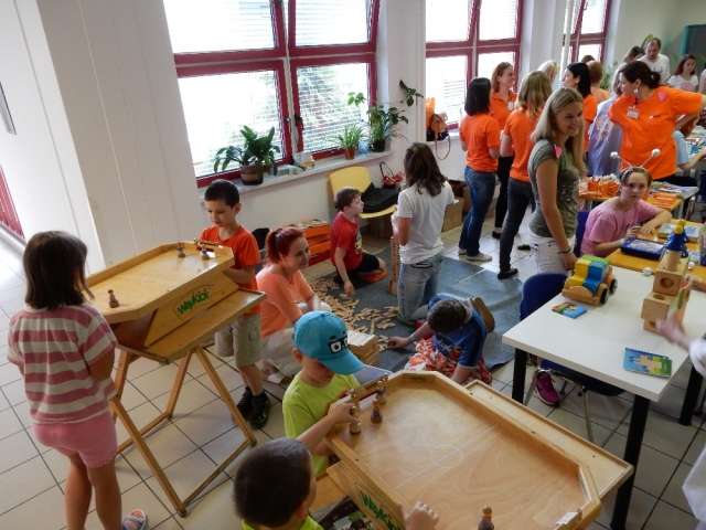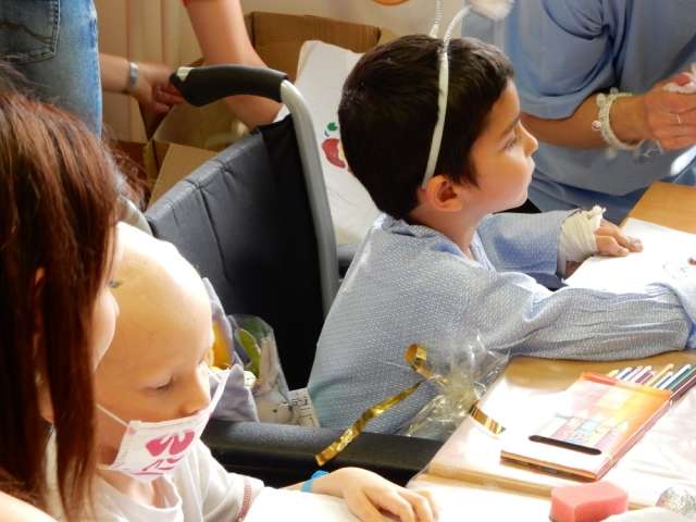 V Městské nemocnici vyráběly děti čepičky na oslavu jejich dne a nafukovali balónky, na které pak společně s dobrovolníky malovali. Všechny děti si odnesly omalovánky a pravítko jako dárek.