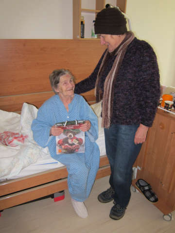 Za jednou paní ze seznamu jsme se nedostala, protože už nezbylo.Když jsme přišla na pokoj předat dárek, ležela na vedlejší posteli paní, která mě pozorovala. Duchapřítomně jsem z jednoho dárku udělal dva, aby radost byla u obou pacientek. Uvědomila jsme si , že dárek před vánoci není nic, protože jediné přání bylo: " Já, chci domů !" Přesto že takového přání nemohu splnit, byla tam radost. Popovídali jsem si chvilku, paní slzely.To stejné jsme prožila i na druhém pokoji.