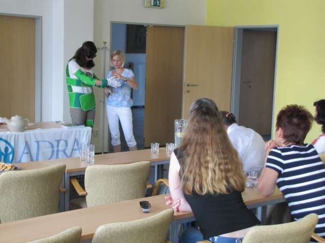 Ve čtvrtek 11. 6. proběhlo ve Vědeckotechnologickém parku v Ostravě-Porubě vzdělávací odpoledne pro dobrovolníky DC ADRA Ostrava. Zúčastnilo se 13 dobrovolníků, někteří dorazli až z Bílovce a Fulneku. První část byla pro dobrovolníky velmi zážitková. Mohli si na vlastní kůži vyzkoušet jak se cítí lidé v pokročilém věku.