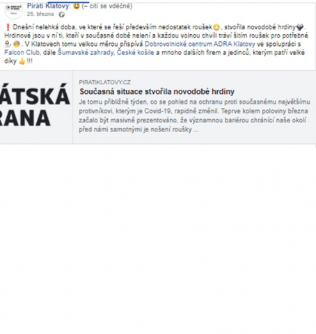 Dopady aktivit DC Klatovy v době pandemie z pohledu sociálních sítí.