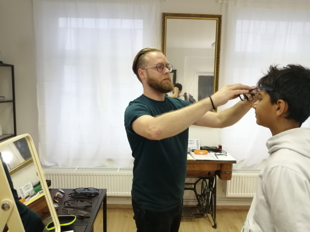 Takovou příleitost hledal a našel optik, pan Petr Čermák, když přes nás nabídl dětem z dětských domovů, že jim zdarma vyrobí brýle. A brzy se naskytla příležitost - v Klokánku Štěrboholy se při hře míč trefil právě do brýlí 12letého Kevina, který je skutečně denně potřebuje.