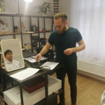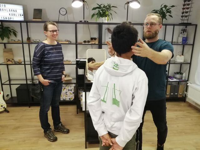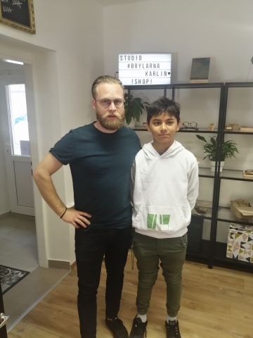 Pan Čermák nás uvítal ve velmi příjemné prodejně, kde si Kevin vyzkoušel spoustu brýlí a zjistili jsme, že už je téměř "dospělý muž" - z dětských brýlí vyrost a vybírali jsme už z "dospěláckých".