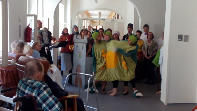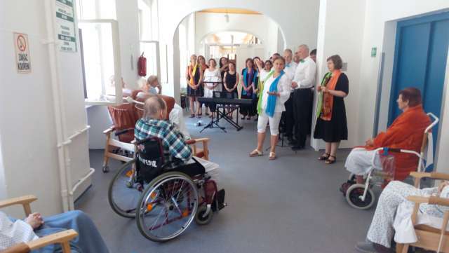 Sbor Gabriel navštěvuje pacienty pravidelně dvakrát ročně už po mnoho let a vždy se na ně těší jak pacienti, tak ošetřující personál. I letošní letní vystoupení bylo jako vždy osvěžující a plné pozitivní energie. Posluchači poznávali známé písně v netradičních a originálních aranžích – renesanční píseň se „zvířecími motivy“, hebrejská píseň, ke které přidali své hlasy také sami pacienti, nesmrtelný Jožin z bažin a samozřejmě zpívaná pohádka na konec. Celé hodinové vystoupení díky své různorodosti drželo pozornost všech posluchačů a nakonec sklidili veliký potlesk.