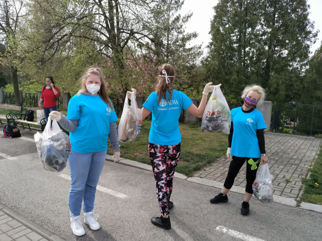 Děvčata z DC ADRA sbírala v Den Země odpadky.