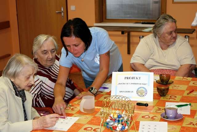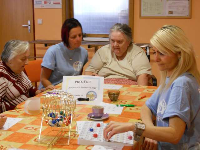 Dobrovolníci si pro seniory připravili netradiční zábavu v podobě hry „Bingo“. Při hře pomáhají dobrovolníci seniorům s vyhledáváním a označováním čísel vylosovaných z osudí. Ten, komu se jako prvnímu podaří označit všechna čísla v hrací kartě, zvolá Bingo a získává drobnou odměnu. Hra se setkala s takovým ohlasem, že i po vyčerpání všech odměn se pokračovalo ještě v několika kolech. Další aktivitou připravenou pro seniory je „Měsíční křížovka“. I ta probíhá za aktivní účasti dobrovolníků a našla si již své pravidelné luštitele. Do budoucna je naplánováno pokračování v těchto činnostech a také realizování nových připravovaných akcí.