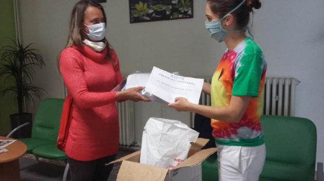 Na obou místech jsme se těšily z příjemného setkání s kontaktními osobami, které s vděčností dar přijaly. Roušky budou sloužit dobrovolníkům, kteří docházejí do těchto zařízení na návštěvy za klienty Domova pro seniory nebo k doučování dětí v rámci Poradny.