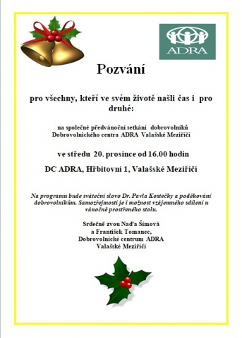 Jako každým rokem, zveme i letos dobrovolníky na poslední setkání v tomto roce, spojené s poděkováním za jejich celoroční službu. Sejdeme se opět ve Sborovém domě CASD abychom společně poseděli a popovídali si, co nás v uplynulém roce potkalo a sdíleli spolu zážitky z dobrovolnické služby. A zejména, abychom všem, kteří se na této práci podílejí, poděkovali.