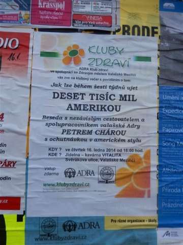 Závratnou rychlostí deseti tisíc mil za půldruhé hodiny prosvištěla čtyřicítka pasažérů třiadvaceti státy nejznámější světové velmoci. Řízení se ujal někdejší učitel autoškoly a stálý spolupracovník valašské Adry, Petr Chára. První cestovatelská beseda letošního roku se samozřejmě odehrávala v osvědčených prostorách meziříčské Vitality. Nepřipoutaní účastníci tentokrát využili veškerý sedací nábytek včetně parapetů pod okny výkladů.