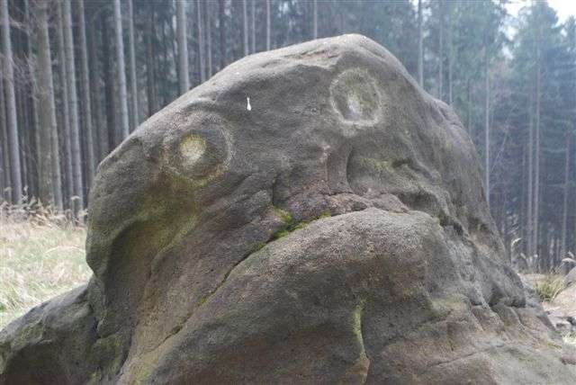 Stezka plná velkých balvanů pak pokračuje podél zvláštního kamenného útvaru. S mírnou přízdobou celkem zřetelně připomíná hlavu jednoho velice známého obojživelníka.