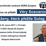 Již podruhé jsme měli možnost uvítat paní Věru Sosnarovou v dobrovolnickém centru ADRA Znojmo. Její životní příběh a poválečné útrapy v gulagu nenechaly posluchače chladné a nejedno oko zaslzelo, když vyprávěla, jak přišla na devatenáct let o svoji zem, maminku a svobodu.