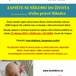 Český národní registr dárců kostní dřeně a Dobrovolnické centrum ADRA Znojmo srdečně zvou na besedu o dárcovství kostní dřeně. Beseda spojená s možností zapsání do registru dárců dřeně proběhne ve středu 22. března 2017 v 18.00 hod. v DC ADRA, Veselá 20, Znojmo.
