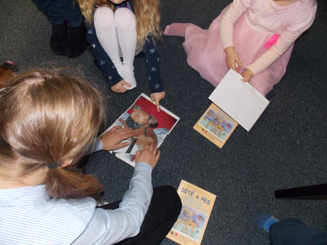 Se svoji psovodkou Adélkou (naší milou kolegyní) ukázaly, co vše umí, jakým způsobem pes komunikuje, jak předcházet nebezpečným situacím při kontaktu se psem a jak se případně ochránit. Děti byly nadšené, důkazem toho byla jejich pozornost a aktivní zapojení do programu.
