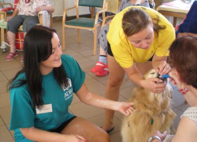 Snažíme se vymýšlet nové hry a nápady. Pro nás je to příjemně strávený čas, a když vidíme, že to klienty baví, usmějí se a mají radost z toho, co děláme, tak to je největší odměna. Jde vidět, že někteří si už pamatují jméno, už ví, jak dávat některé povely, postupně se to zlepšuje. Jsou na nás moc hodní, i když to děláme jen pro radost a učíme se za pochodu, tak je to vždy krásné odpoledne.