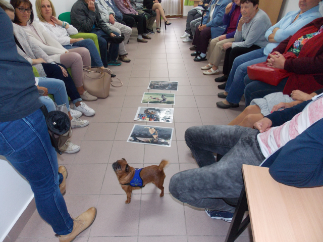 Lektorka Mgr. Adéla Kubalíková pohovořila o dobrovolnictví a jeho oblastech, jak pomáhají zvířata lidem, dále o přípravě canisterapeutického týmu a samotném zapojení v zařízeních při canisterapii. V průběhu přednášky si hosté mohli pohladit či pomazlit psa Agátku a na závěr canisterapeutický tým ukázal, jak zapojují klienty v praxi.