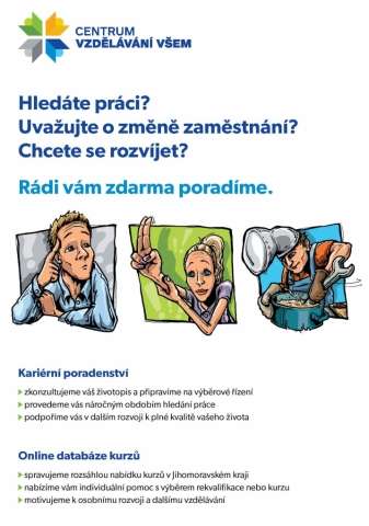 Kromě osobní schůzky, na které mohou zájemci s poradkyní rozebrat svou situaci a zmapovat možnosti a kroky k jejímu vyřešení, se dozví také tipy, jak si vylepšit pracovní profil třeba úpravou životopisu tak, aby zaujal. Možnou cestou k lepšímu uplatnění je také zvýšení kvalifikace absolvováním vhodného kurzu. Více informací včetně databáze kurzů a rekvalifikací naleznete na webu www.vzdelavanivsem.cz.