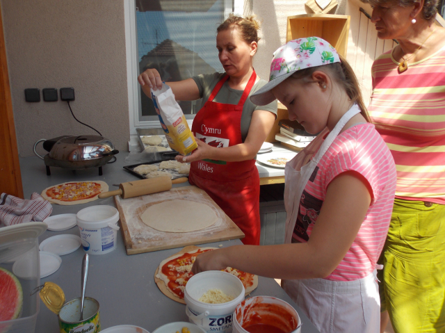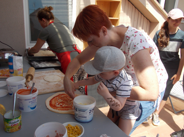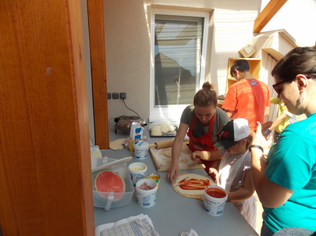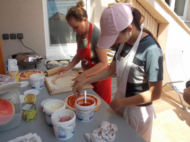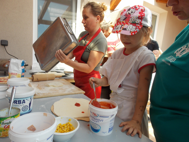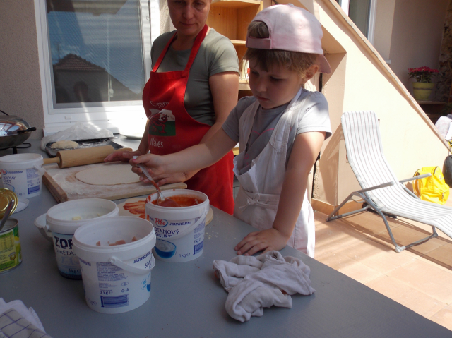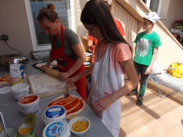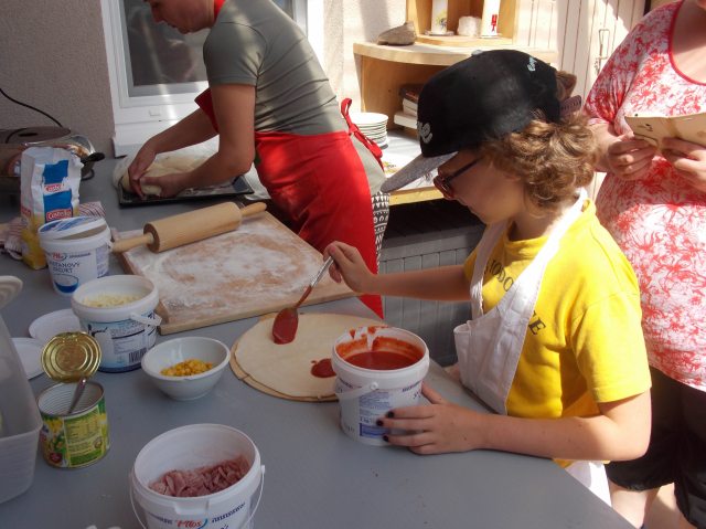 V neděli jsem na našem dvorku přivítala spoustu malých i větších dětí, několik rodičů a dobrovolníky z programu Pět P, aby si nazdobili a upekli svoji pizzu a také se dozvěděli pár informací o Itálii.