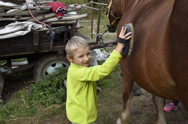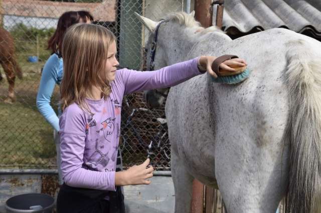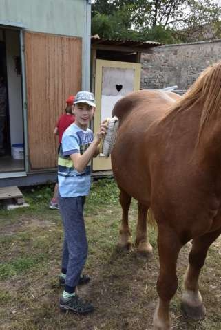 Posledních dní babího léta chtěli využít děti, dobrovolníci i přátelé Programu Pět P a také děti a vedoucí z Kroužku Kamarád, proto společně vyrazili na Terčin dvůr v Micmanicích. Účastníci měli šanci vidět, jak se cvičí hříbě krok po kroku než je připravené na osedlání, sami si vyzkoušet péči o koně i jízdu na nich. Opět si mohli prohlédnout i ostatní zvířátka, pomazlit se s kočičkami, novým štěňátkem i kozami. Dokonce viděli čerstvě narozená morčátka, která byla jen hodinu stará. Počasí bylo krásné a opékaly se i špekáčky, takže si každý našel něco. Na konci výletu děti dostaly diplomy a sladkou odměnu a od majitelů farmy tématickou památku v podobě podkůvky pro štěstí.
