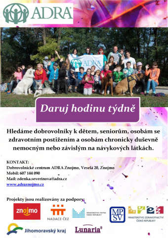 Dobrovolníků není nikdy dost. Přidejte se i Vy ke znojemským dobrovolníkům a darujte hodinu týdně svého volného času.