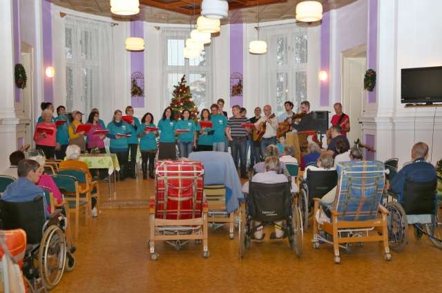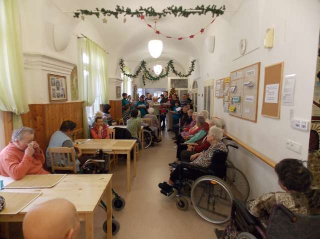 Zpívání vánočních koled jsme zahájili v Domově pro seniory Plaveč, tradičně jsme již po několikáté zazpívali v Domově pro seniory Jevišovice, dále pak v Domově důchodců Božice, na Eminu zámku a v Azylovém domě pro muže a ženy.