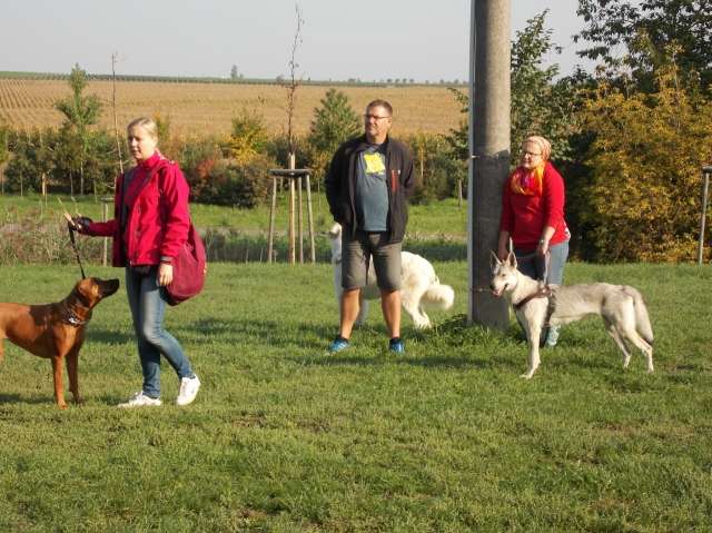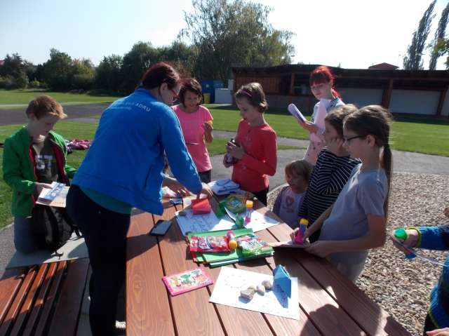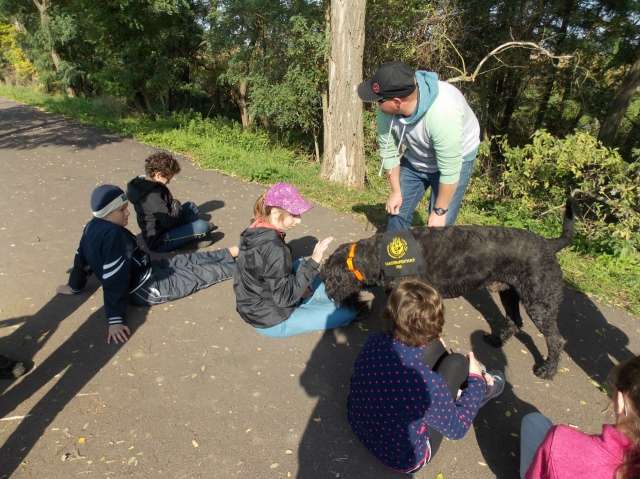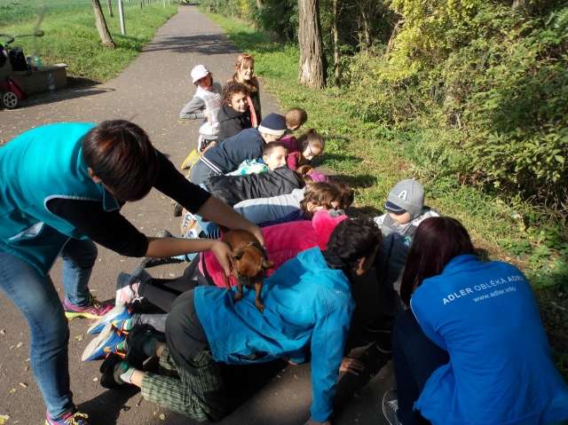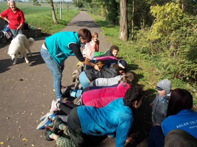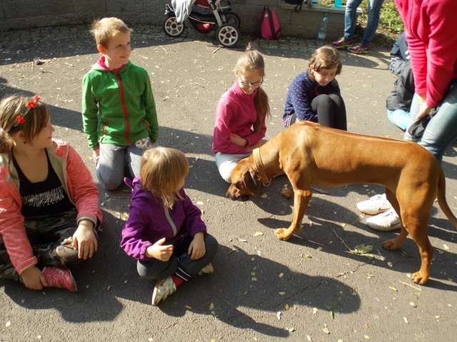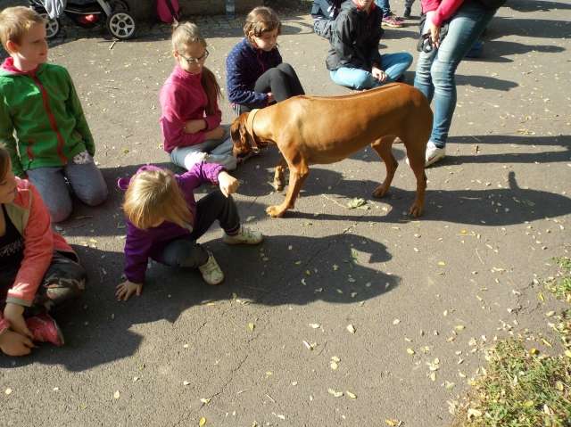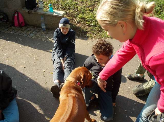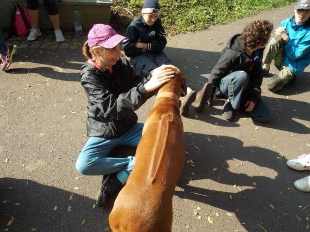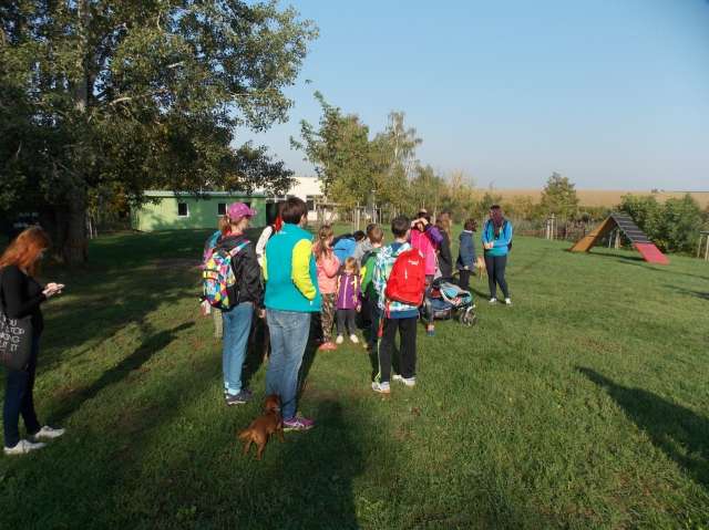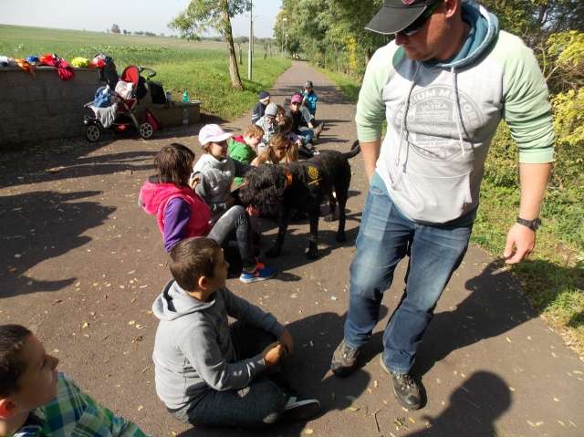 Za zábavou s pejsky jsme se vydali s dětmi, dobrovolníky a přáteli programu Pět P ve sváteční čtvrtek 28. září. Přijeli jsme do nedaleké znojemské obce Chvalovice, kde na nás už čekali pejsci se svými psovody. Všichni jsme se společně seznámili i s pejsky a potom jsme měli možnost vidět cvičení policejního psa, jeho psovod nám ukázal, jak se cvičí poslušnost a různé pokyny, které musí policejní pes zvládat a dozvěděli jsme se, které plemeno je pro tuto činnost nejvhodnější a několik dalších zajímavostí. S našimi psími kamarády jsme si ještě zahráli několik her, jako třeba piškotovanou a stopovanou, a pak jsme si šli společně opéct špekáčky. Po svačince jsme vyzkoušeli atrakce na místním hřišti a týmy ve složení holky versus kluci si změřili síly v soutěžích, kde jsme prověřili jejich ohebnost, bystrost a zručnost. Za splněné úkoly si děti odnesly domů drobné odměny a něco malého na zub. Všichni společně jsme strávili krásný slunečný den a spokojení jsme odjížděli zpět.