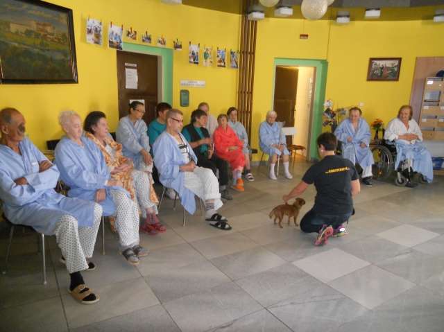 Ve znojemské nemocnici na oddělení dlouhodobě nemocných jsme zpříjemnili čas pacientům promítáním fotek, ukázkou canisterapie a společným zpíváním.
