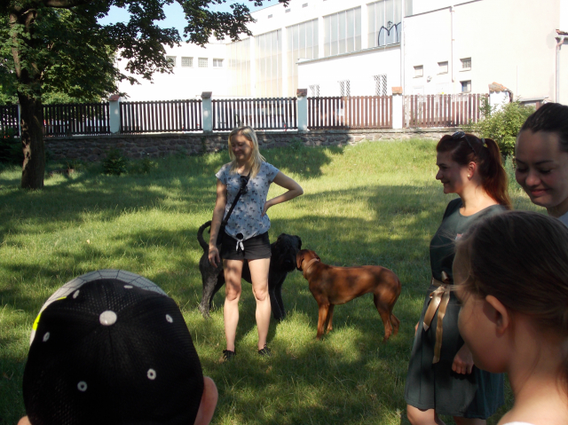 Dobrovolníci měli připravené stanoviště, kde děti poznávaly předměty potřebné k starostlivosti o pejska, dozvěděly se čím a jak se pejsci krmí, jak často se češou i jak se jmenuje nemocnice pro pejsky.