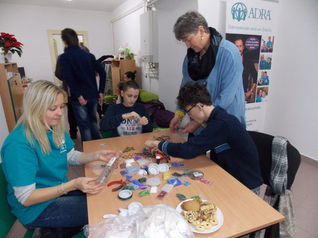 O první adventní neděli se v sídle znojemské Adry na Dolní České ulici ve Znojmě uskutečnilo předvánoční tvoření. Hlavními aktéry byly děti zapojené do programu Pět P, kterým při tvoření asistovali nejen zaměstnanci Adry, ale také dobrovolníci a přátelé programu.