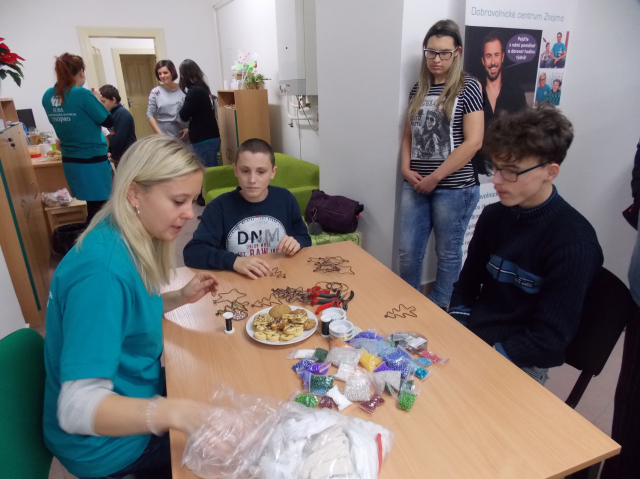 Děkujeme všem zapojeným dobrovolníkům a Katce Mrvové, pod jejímž vedením si mohli všichni vyzkoušet drátkování vánočních hvězdiček a stromečků.