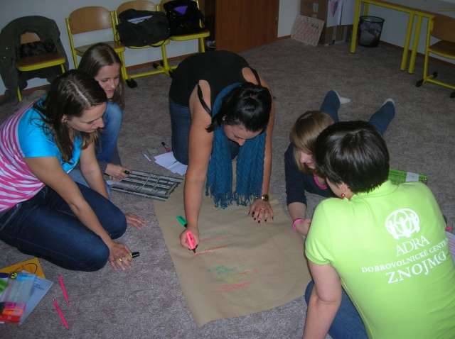 15. - 16. dubna se konal první výcvik dobrovolníků do programu Pět P. Čtyři zájemkyně o program prošly teoretickým i praktickým školením. Dozvěděly se mnoho informací o dobrovolnictví, o DC ADRA Znojmo, o právech a povinnostech dobrovolníka, o typologii klientů programu a vyzkoušely si modelové situace, do kterých se při práci s dětmi můžou dostat. Dvoudenní výcvik byl protkaný spoustou seznamovacích, motivačních a kooperativních her. Po samotném výcviku jsou dobrovolníci již připraveni na práci s dětmi.