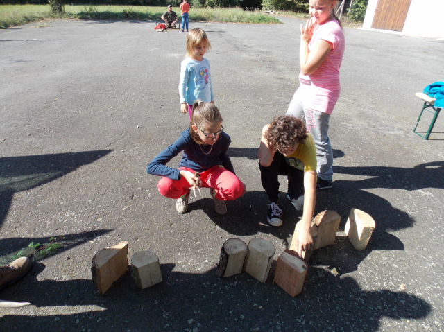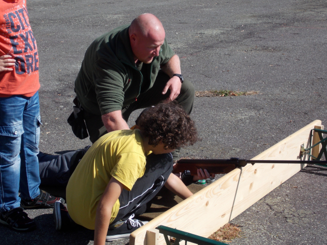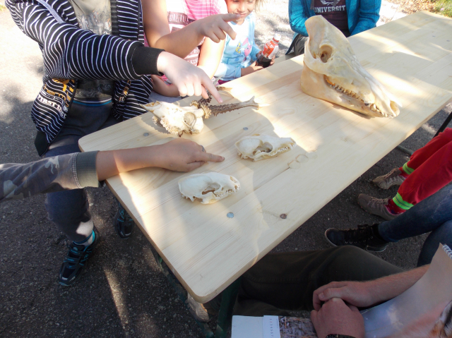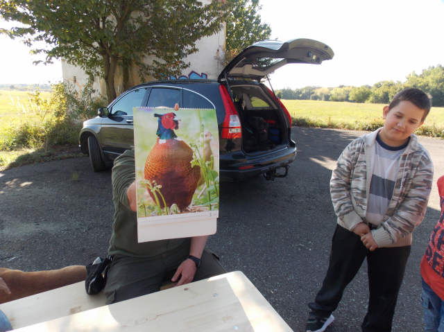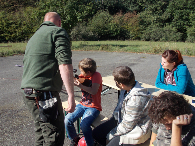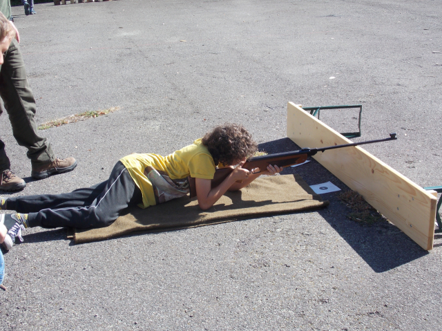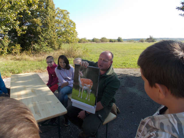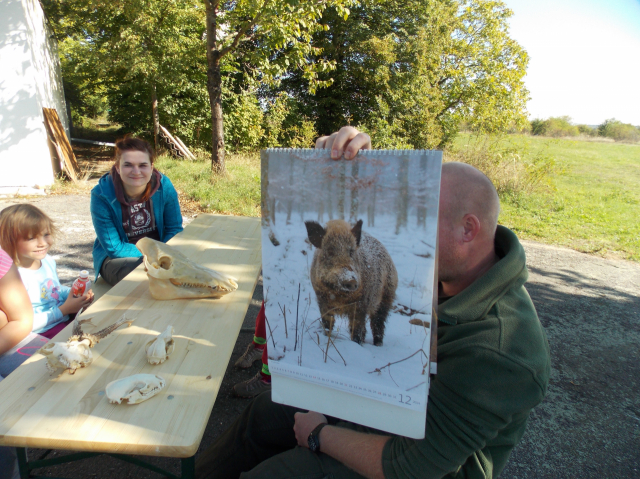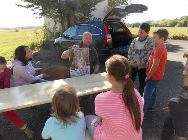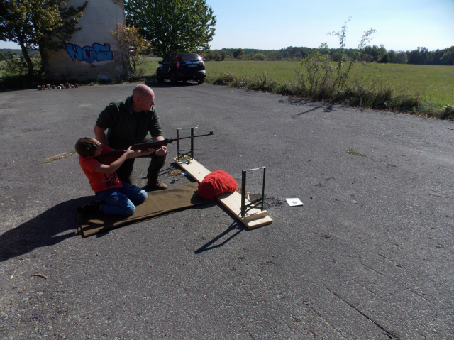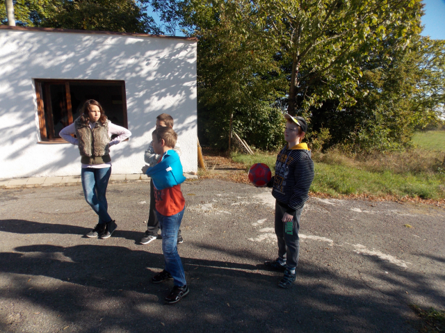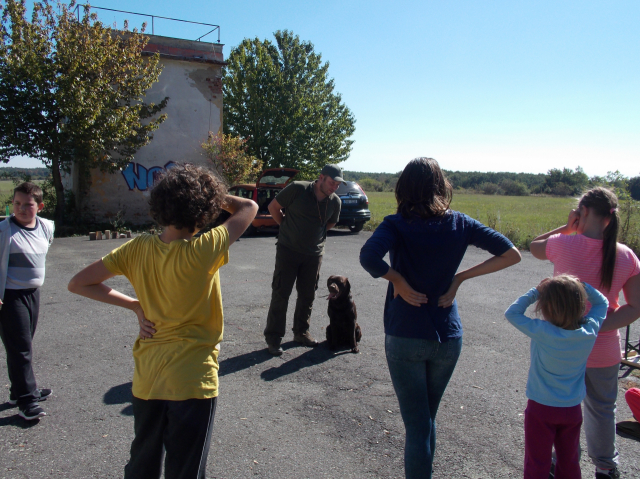 Pejsci se rozehřáli hrou na schovávanou a děti zase bežeckými závody. Společně jsme si pak osvěžili znalosti z myslivosti, lovectví a určování psích plemen. Děti dle obrázků určovaly druhy divoké zvěře a nakonec si vyzkoušely přesnou mušku střelbou na terč. Neposlední fyzickou aktivitou byla kopaná, aportování a schovávání kořisti, kterou Bárt vždy úspěšně vyčmuchal.