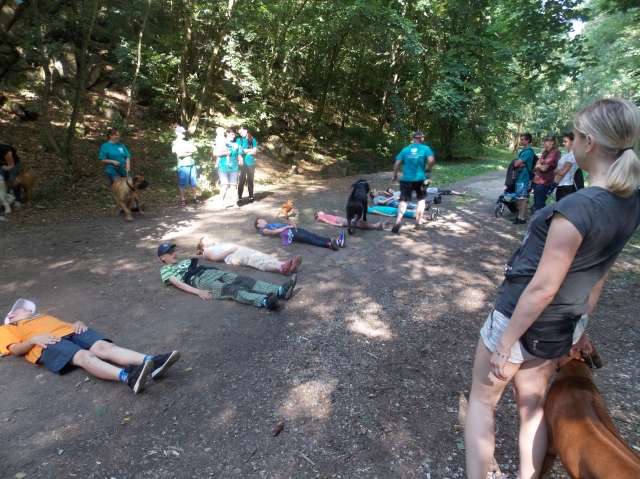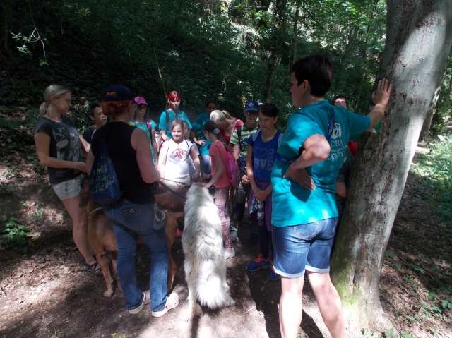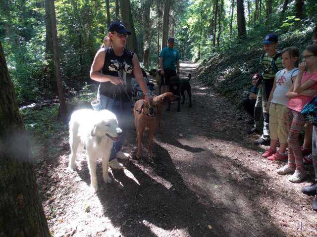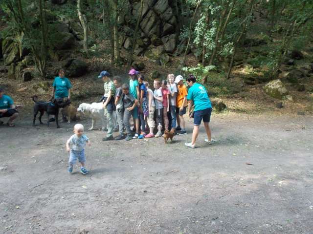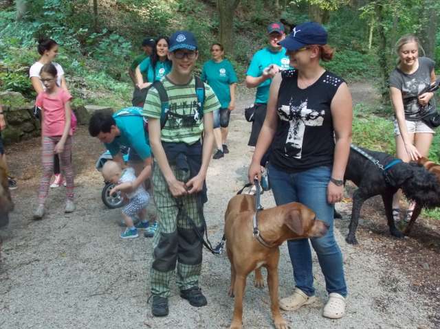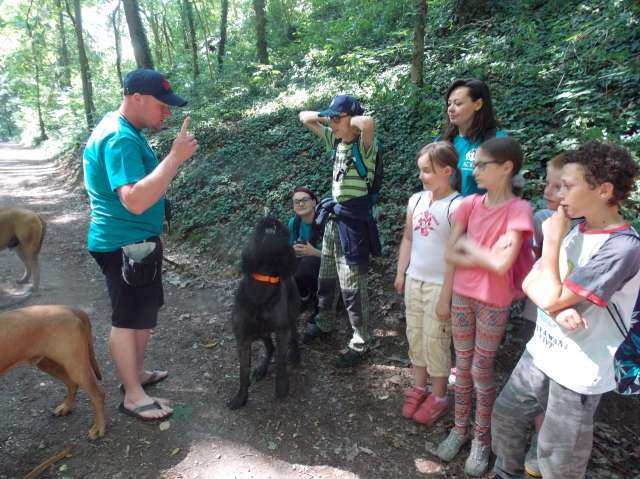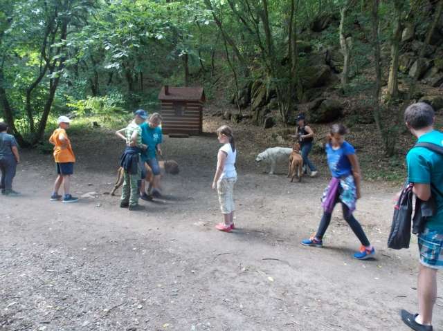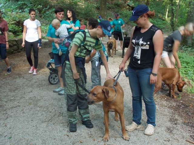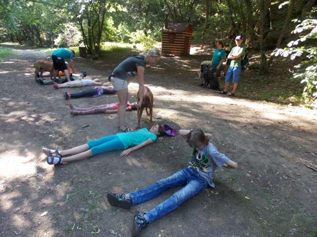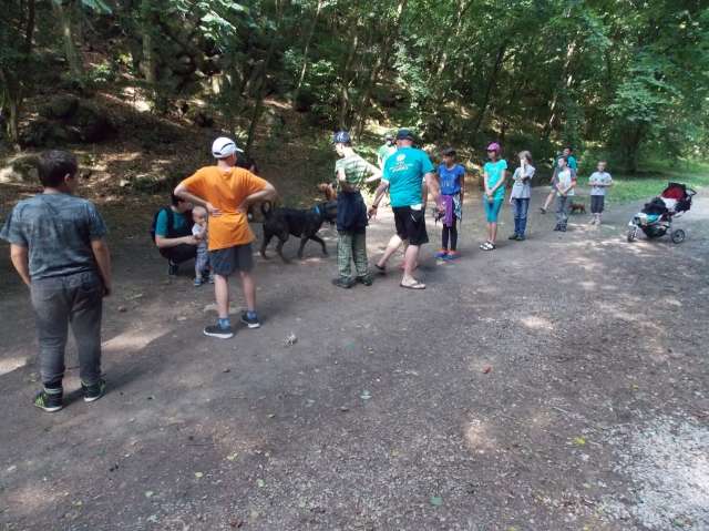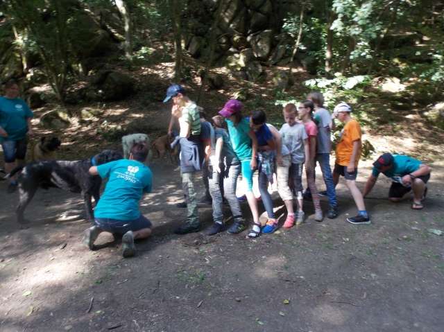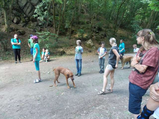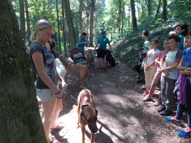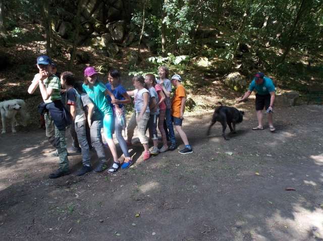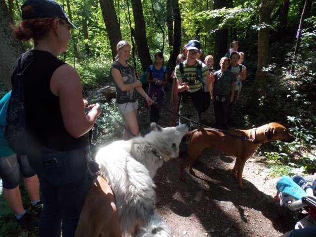 V pátek 16. 6. 2017 jsme s dětmi vyrazili do Gránického údolí, kde na nás na půli cesty čekali dobrovolníci se svými čtyřnohými kamarády. Jsou to psi, kteří již pomáhají v domovech pro seniory, nebo se na roli pomáhajícího teprve připravují. Děti šly lesem po psí stopě, tu a tam musely plnit nachystané úkoly.