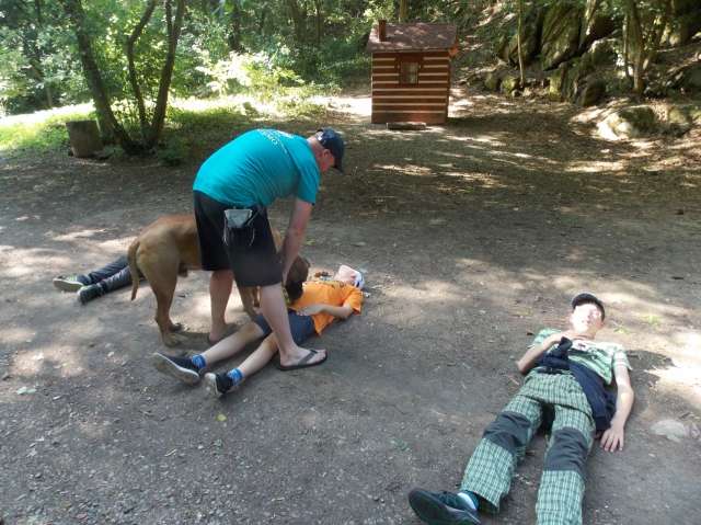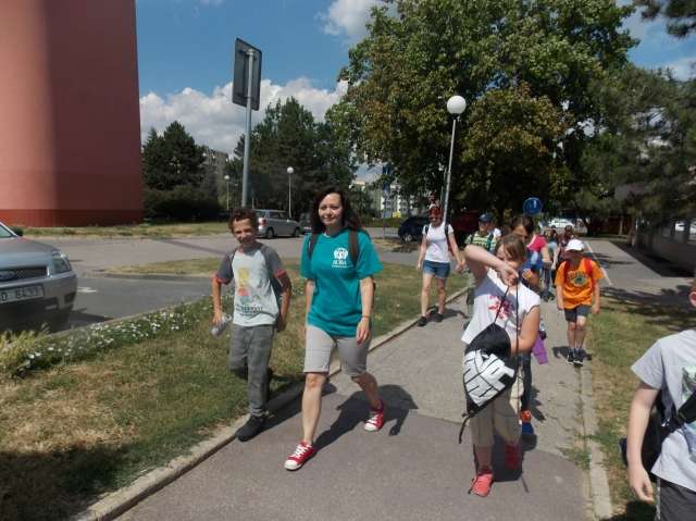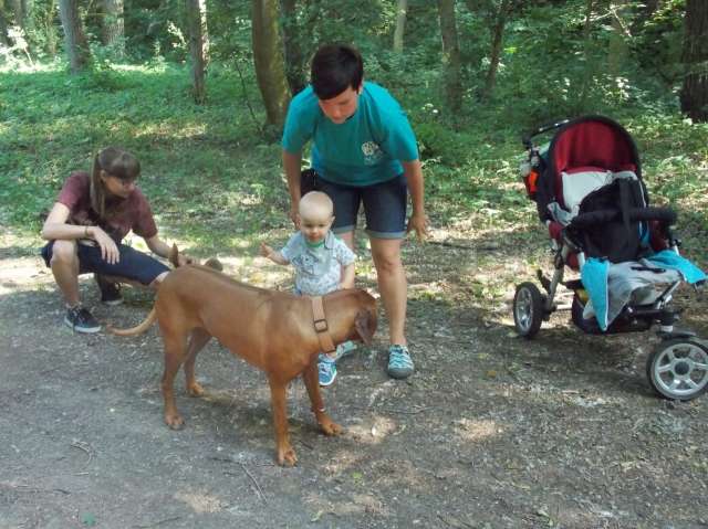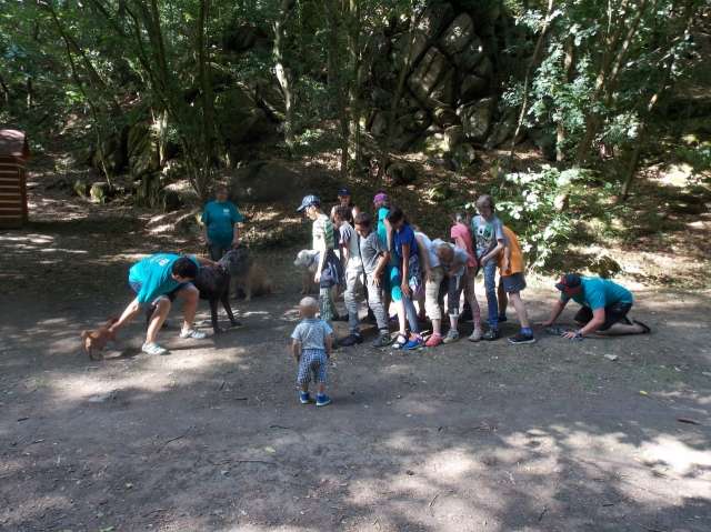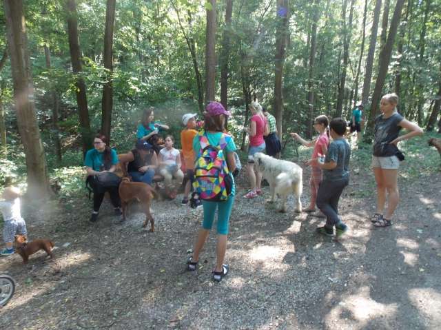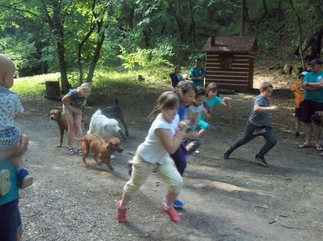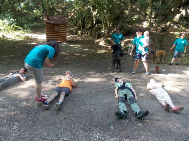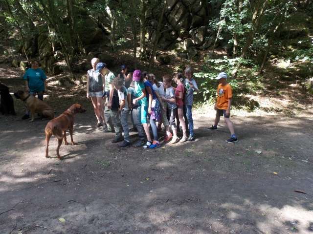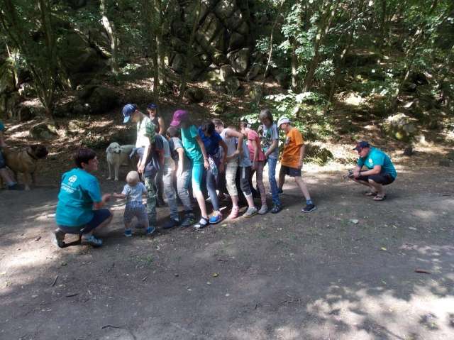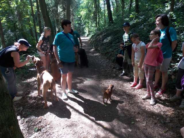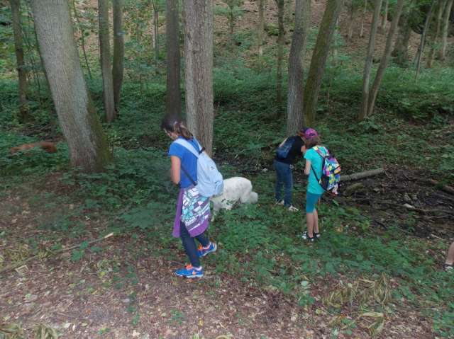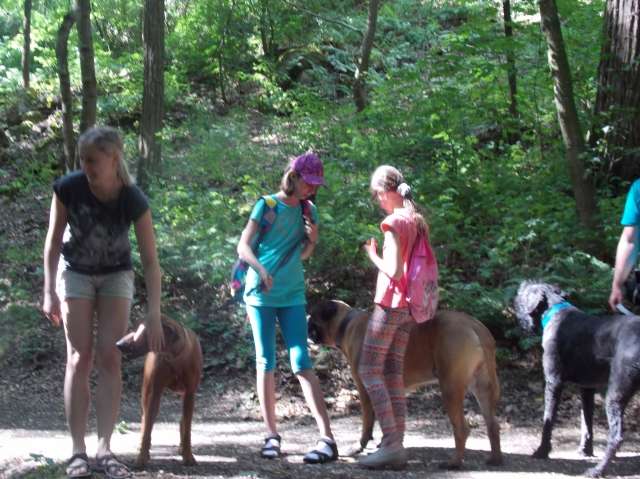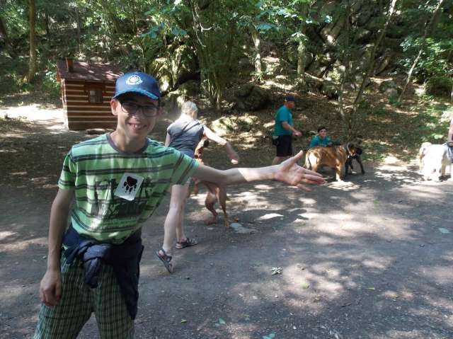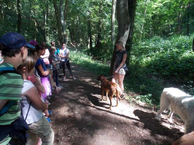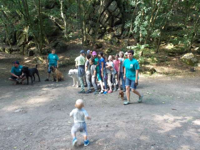 V pátek 16. 6. 2017 jsme s dětmi vyrazili do Gránického údolí, kde na nás na půli cesty čekali dobrovolníci se svými čtyřnohými kamarády. Jsou to psi, kteří již pomáhají v domovech pro seniory, nebo se na roli pomáhajícího teprve připravují. Děti šly lesem po psí stopě, tu a tam musely plnit nachystané úkoly.