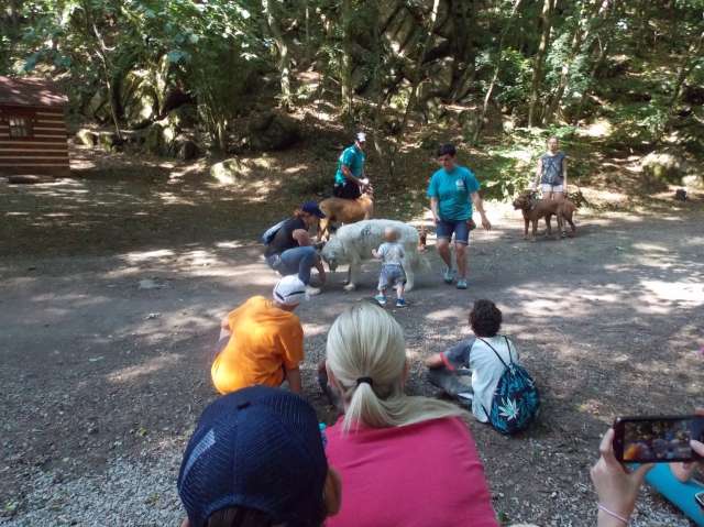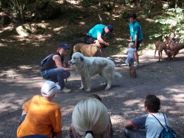 U Karkulky jsme zakotvili a dobrovolníci dětem předvedli něco málo z dovedností pejsků. Hrou se děti seznamovaly s chováním psů. Např., jak se chovat při setkání s cizím psem, jak reagovat na agresivní psy a získaly spoustu dalších zajímavých informací. V neposlední řadě se mohly s pejsky projít, pomazlit a dokonce si s nimi i zasoutěžit.