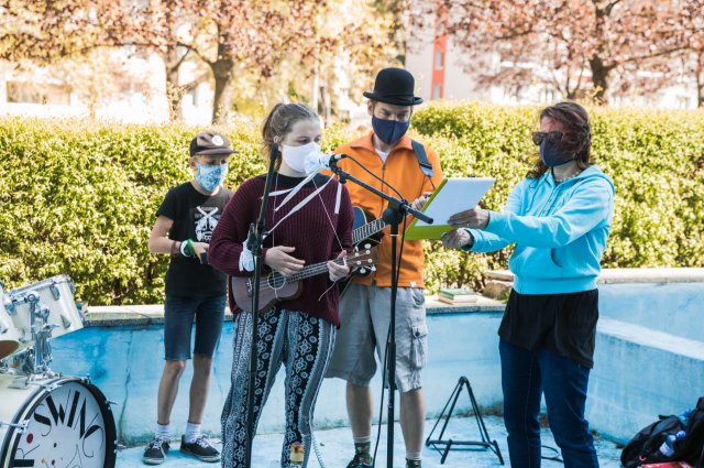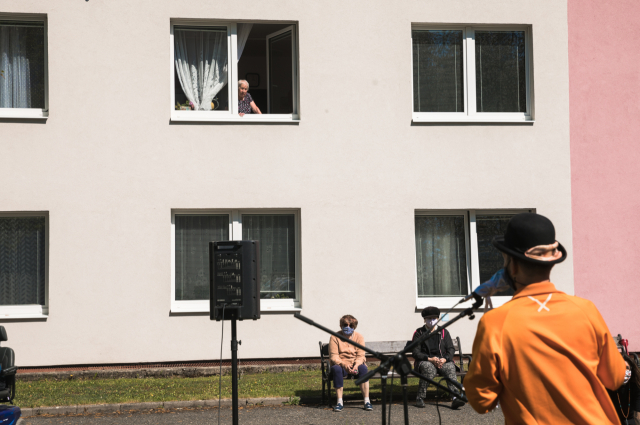 Za slunného počasí dne 23. 4. 2020 naše dobrovolnické centrum v Klatovech uspořádalo kulturní pásmo pro klienty Domova seniorů v Klatovech. Místem produkce se stal prostor okolo samotného objektu, tak aby si představení mohli jeho obyvatelé užít z oken a balkonů svých příbytků a byla tak dodržena všechna bezpečnostní opatření. Samotný program si připravila rodina Doubravových. Zazněly básně nejznámějších českých autorů mj. básníka Jaroslava Seiferta. Dále zazněly české i zahraniční písničky za doprovodu kytary, ukulele či bicí. Děkujeme našim dobrovolníkům za zajištění techniky a všem členům rodiny Doubravových za příjemně strávené odpoledne, které snad obyvatelům vykouzlilo úsměch na tváři. Jak celá akce vypadala si můžete prohlédnout v naší fotogalerii.