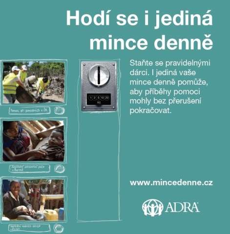 Pro občasný nebo výjimečný příspěvek se jednou za čas rozhodne každý druhý z nás. Avšak jen deset procent obyvatel České republiky ze svého příjmu pravidelně podporuje nějakou veřejně prospěšnou aktivitu. Pravidelné dárcovství přitom nemusí rozpočet domácnosti výrazně zatížit. Například prostřednictvím humanitární organizace ADRA a jejího dárcovského programu Mince denně mohou lidé přispívat na dobrou věc v řádech korun.