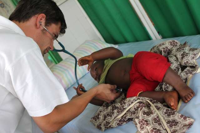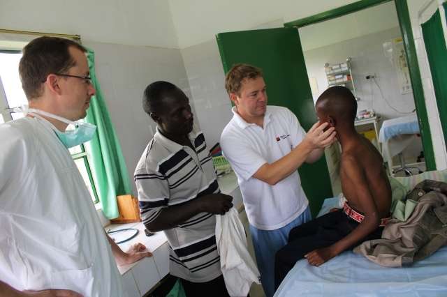 Hned první den nám přivezli dvanáctiletého kluka s asi 150 žihadly na hlavě a krku v anafylaktickém šoku. Ihned jsme mu zajistili žílu, medikovali, napojili ho na monitor a kyslík. K naší velké radosti vše dobře dopadlo a hoch se rychle zotavil. Odcházel po dvou dnech „jen“ s mírně opuchlou tváří. Večer nám ještě donesli šestiletého kluka, který si při fotbale vykloubil prst na noze. Kloub jsme vrátili do původní polohy a prst zašili, vše pěkně po „africku“ za světla čelovek.