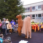 Děti z této školky se 15.12. proměnily v tančíci a zpívající velbloudy, termity, oslíky, pouštní skřítky a syrské trhovce. A dokonce přitom pokřtily naše CD "Do Sýrie nejen za pohádkou". Přesněji řečeno, pokřtil ho velbloud spolu s dětmi tak, že se velkým brčkem napil vody z oázy a prsknul vodu na CD.