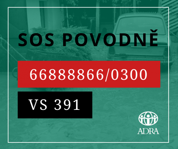 Humanitární organizace ADRA na situaci reaguje vyhlášením veřejné sbírky na pomoc lidem postiženým povodněmi.
