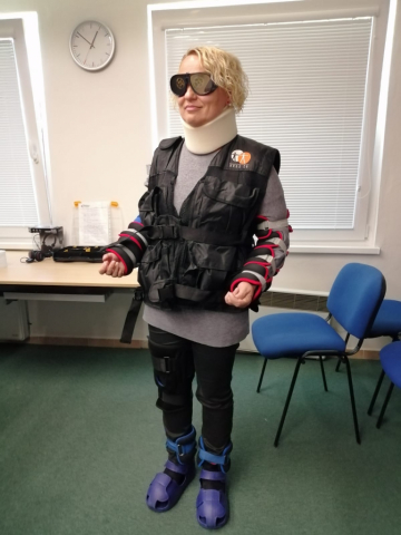 Většina z nás si nedovede představit, jaké pocity musejí postarší lidé mít i u zcela obyčejných situací, když je bolí klouby, někdo na ně spěchá a podobně. Díky gerontoobleku si můžete jejich situaci zažít na vlastní kůži. Patnáctikilová vesta, speciální sluchátka, brýle a rukavice Vám nasimulují zatuhlost kloubů, pískání v uších, šedý zákal i třes v rukou a vy zjistíte, že se vám rázem změnila perspektiva, jak se na věci díváte. Ještě donedávna jsme mohli používat gerontooblek jen díky laskavému zapůjčení od neziskové organizace Život90, která se snaží seniory podporovat k co největší nezávislosti. Za jejich podporu jim moc děkujeme. Jsme rovněž rádi, že díky grantu od skupiny ČEZ můžeme nyní mít k dispozici gerontooblek vlastní.