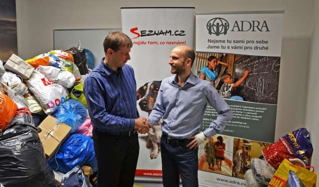 Internetový portál Seznam.cz zorganizoval mezi svými zaměstnanci sbírku oblečení a věnoval ho Adře. Věci si včera symbolicky převzal ředitel Adry Michal Čančík. Bylo to téměř 7 kubíků šatstva a textilu. Děkujeme všem, kdo se zapojili!