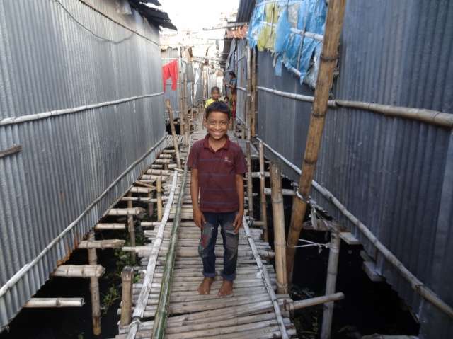 Slum Čalantika, ve kterém s babičkou bydlí, je vlastně „rybník“ uprostřed velkoměsta, kam proudí splašky z okolních budov i ze slumu a nad kterým jsou z bambusu a kusů plechu postavená malá obydlí. Do zdravého prostředí má toto místo opravdu daleko. Pro spoustu chudých rodin je však tento slum jediným místem, kde si mohou dovolit žít.