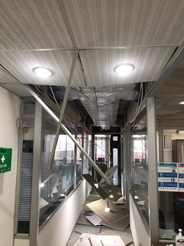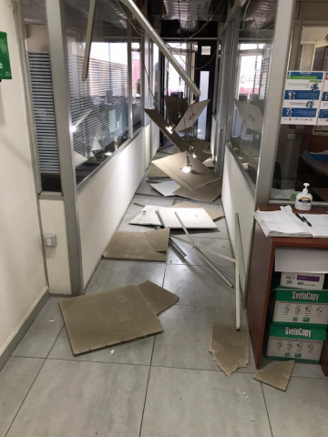 Poškození kanceláře ADRA, která je vzdálena téměř 3 km od přístavu ukazuje na sílu výbuchu.
