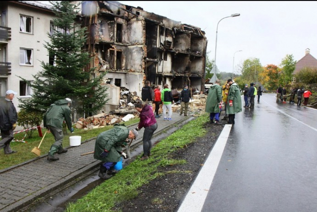 Současně stále probíhá pomoc s vybavením domácností a psychická podpora zasaženým obyvatelům ve spolupráci s Českým červeným křížem, Charitou, Krajským úřadem Jihočeského kraje a starostou obce Lenora. Na místě je realizována pomoc na rovině psychické první pomoci a monitoringu potřeb zasažených obyvatel i obyvatel v těsném sousedství zničené nemovitosti. Působí zde dobrovolníci humanitární pomoci, kteří bez nároku na finanční odměnu pomáhají při zvládání dopadů mimořádné události, dlouhodobě podporují neštěstím zasažené spoluobčany ve využití jejich vlastních sil a posilují či iniciují vzájemnou pomoc v rodinách, skupinách a obcích.