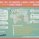 Rádi bychom poděkovali všem, kteří se v roce 2015 zapojili do dárcovského programu eDonation. V roce 2015 jste zakoupili celkem 542 dárků v celkové hodnotě 265 600 Kč. Ještě jednou srdečně děkujeme za Vaši ochotu pomáhat!