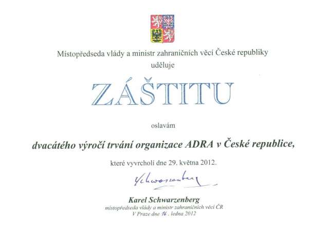 V roce 2012 si ADRA připoměla 20 let od založení pobočky v České republice.
