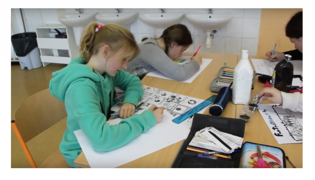 Tak nejčastěji určitě o témata týkající se třídění a znečišťování planety. Vysvětluji si to především tím, že mnoho našich obyvatel nejen třídí, ale dokonce se tu jednou za čas pořádá den, kdy žáci a jiní dobrovolníci vyrazí ve skupinkách ven a třídí odpad. Potom bylo ještě hojně zobrazované téma “život ve vodě”, kdy se nabízí kresba různých rybiček a dalších podvodních živočichů, a to se dětem dobře kreslí. Minimálně dvěma žákům se příběh podařilo propojit i s pop kulturou. Vzpomínám si na komiks s postavou Groot z filmu Strážci galaxie. Je to o dítěti, jehož tatínek kácí stromy. Dítě se seznámí s Grootem, který jim po sléze zachrání život. Od té doby tatínek s kácením stromů skoncuje, neboť Groot je něco jako živý strom) a také tam máme komiks s komiksovým hrdinou Wolverinem, který své vystřelovací drápy začal používat na to, aby na ně napichoval odpadky.