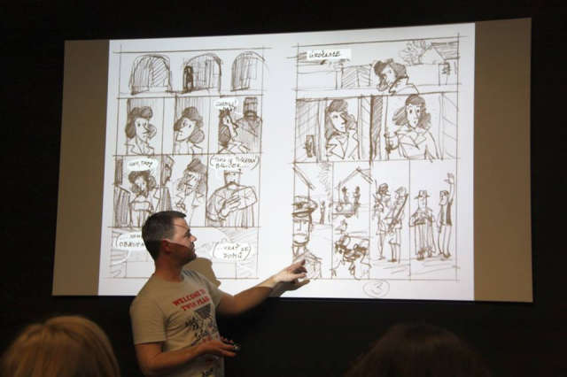V druhé části workshopu se účastníci pustili do tvoření. Na základě zadaného scénáře o rozchodu mladého páru, jehož pointu si měli sami dovymyslet, nakreslili v průběhu necelých dvou hodin krátký komiks.