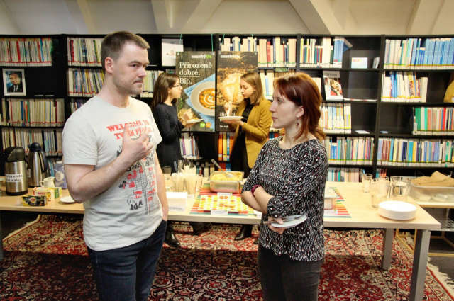 Hosté si nad šálkem čaje a dobrého moštu prohlédli vystavené komiksy, které je skrze osobní příběhy či prostřednictvím humoru seznámily s tématem soutěže – Cíly udržitelného rozvoje.