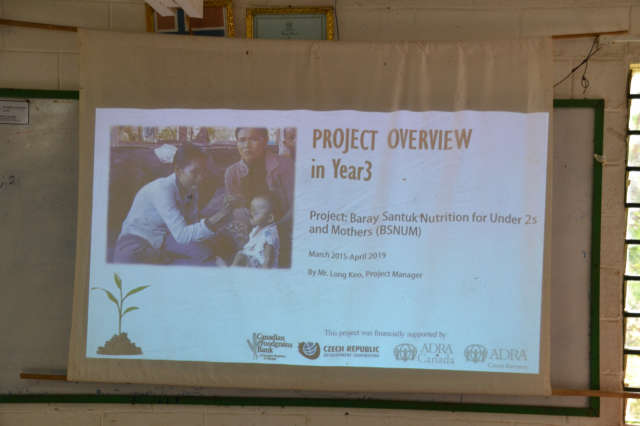 Jedná se o trilaterální projekt – na jeho realizaci se podílejí tři aktéři. Kromě nás v něm je zapojená ADRA Kanada, kde je hlavní donor Kanadská potravinová banka. Projekt je celkem pětiletý, letos bude končit. Naše účast byla financována Českou rozvojovou agenturou pod Ministerstvem zahraničních věcí, kde jsou projety nejdéle tříleté. Ke druhé části otázky - udržitelnost projektu, tedy co bude, až projekt skončí je velké téma. Má to více rovin – dobrá praxe, která se předává v rámci komunit ve vesnicích přes sousedy, rodinu, známé k dalším lidem a rodinám. Bude se předávat také v rámci generací, děti proškolených rodin budou mít jiné vědomosti a návyky. Dalším pozitivním efektem se týká facilitátorů setkání. Ti v průběhu projektu organizují a moderují setkávání komunity, kterou zároveň vzdělávají v tématech spojených s výživou. Často se před tím s podobnou pedagogickou činností nesetkali, a když si projdou tímto projektem, jsou z nich docela dobří učitelé. Někteří z nich si během projektu dodělali pedagogické vzdělávání a zapojili se do vzdělávacího systému v Kambodži, takže začali třeba učit na místní škole.