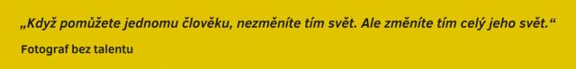"Byl jsem v Bangladéši a viděl extrémní chudobu, hrozné podmínky pro život. Také jsem viděl radost z maličkostí, velkou chuť žít a naději. Naději, kterou ale v mnoha případech zabíjí nedostatek možností vzdělání." říká Fotograf bez talentu.